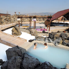 A hot spring facility that boasts a large scale of 1,000 square meters for both men and women. In the open outdoor area, you can experience nature with your whole body on the 150m long boardwalk, and enjoy 15 different hot bathing styles.