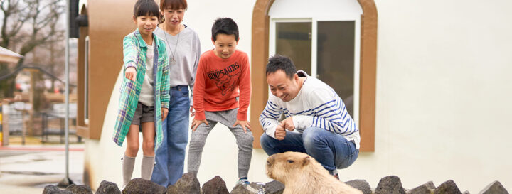 A model course that even small children can enjoy, even in rainy weather. You can enjoy exercise, meals, and fun interactions with animals.