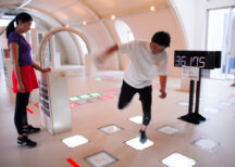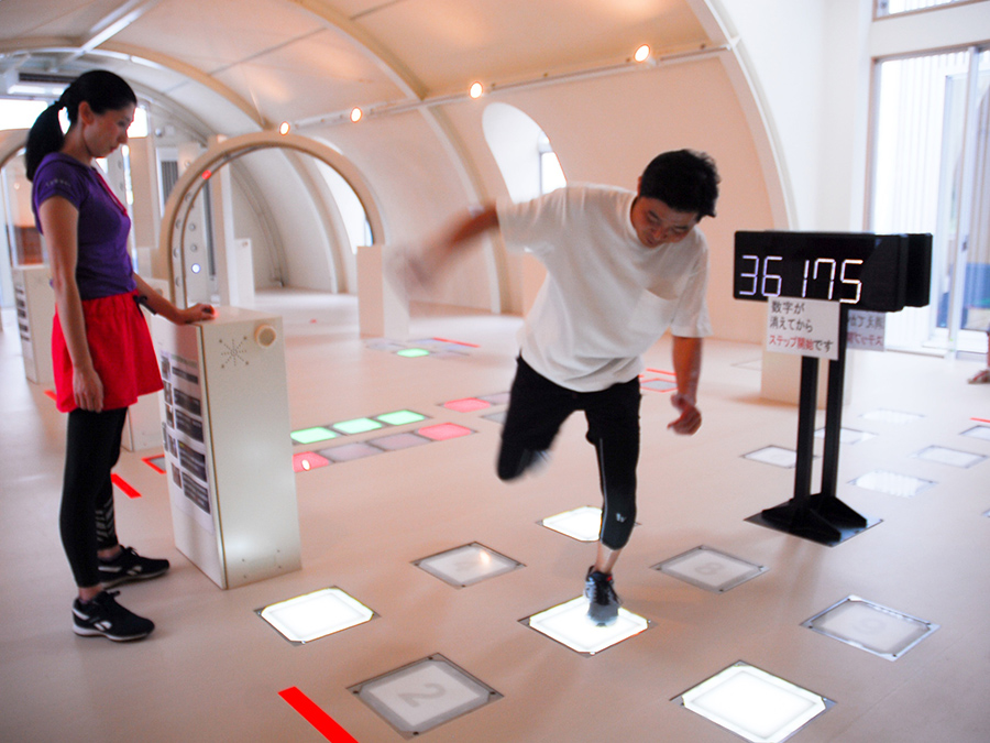 The device is designed to provide a fun, game-like experience, and measures eight items including flexibility, stamina, memory, leg strength, balance, agility, explosive power, and reaction accuracy.