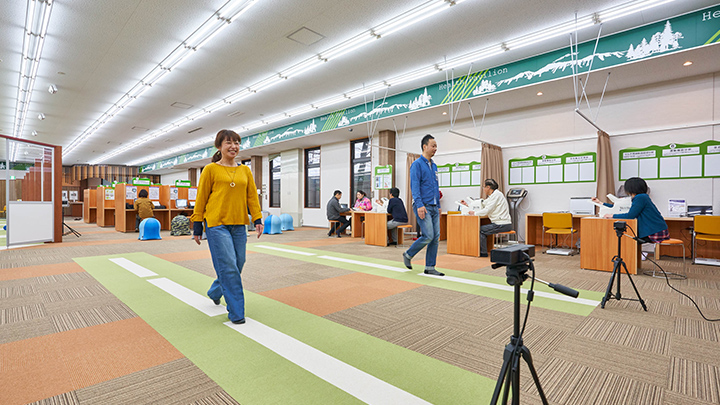 Just by walking toward the 3D sensor, 36 items such as walking speed, stride length, vertical movement of the thorax and lumbar region, and leg lift angle are displayed numerically. The walking posture of the entire body is scored based on criteria according to age and gender.