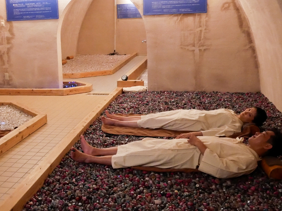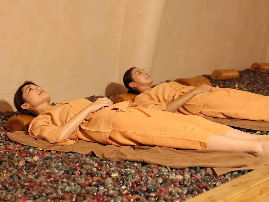 By placing a mat containing 108 types of medicinal herbs in the bedrock bath, you can experience the effects of medicinal herbs and the metabolism caused by far infrared rays generated from the bedrock at the same time!