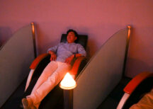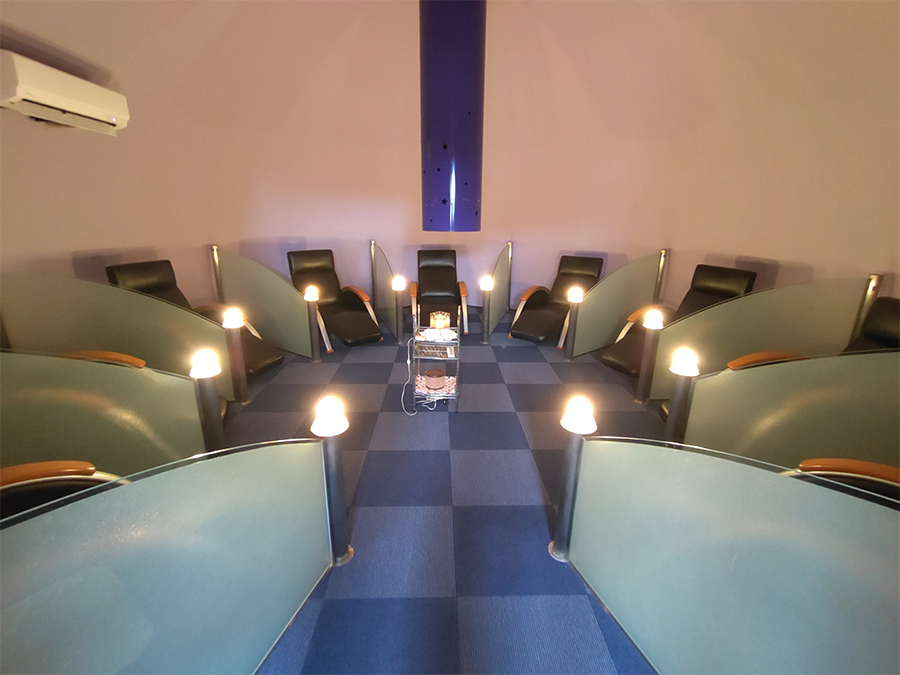 This is a relaxation dome that soothes your five senses while being surrounded by high concentration oxygen, aromatic scents, and soothing sounds on a spacious reclining sofa for one person.