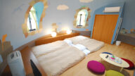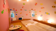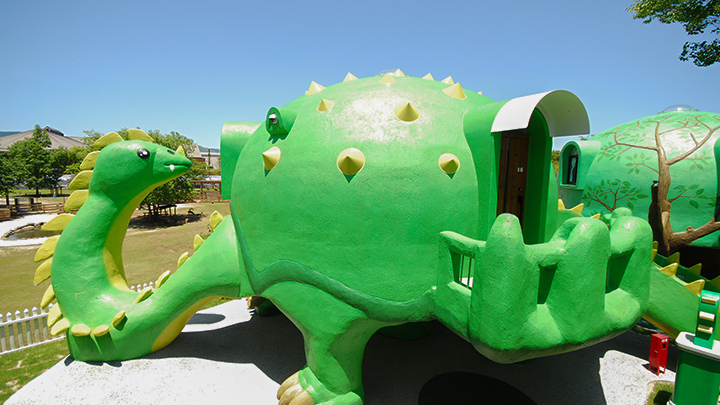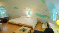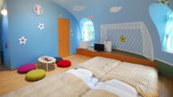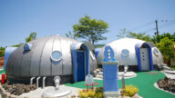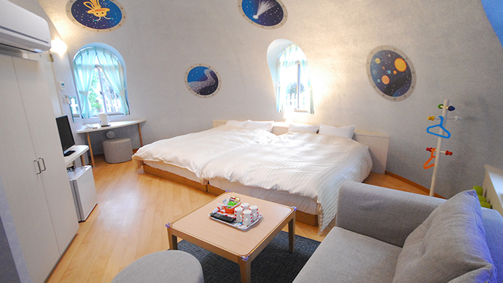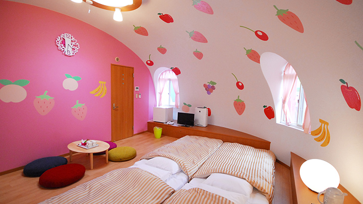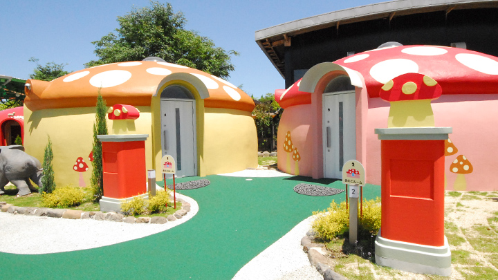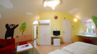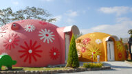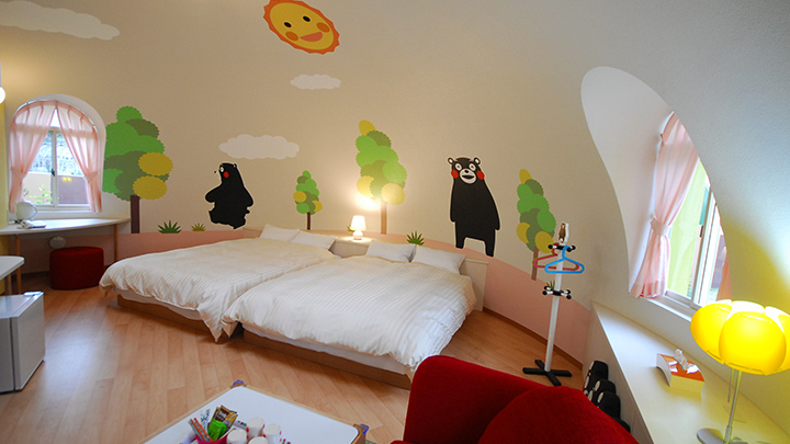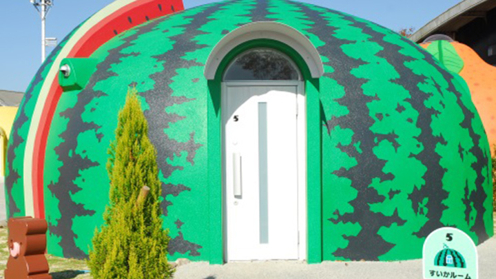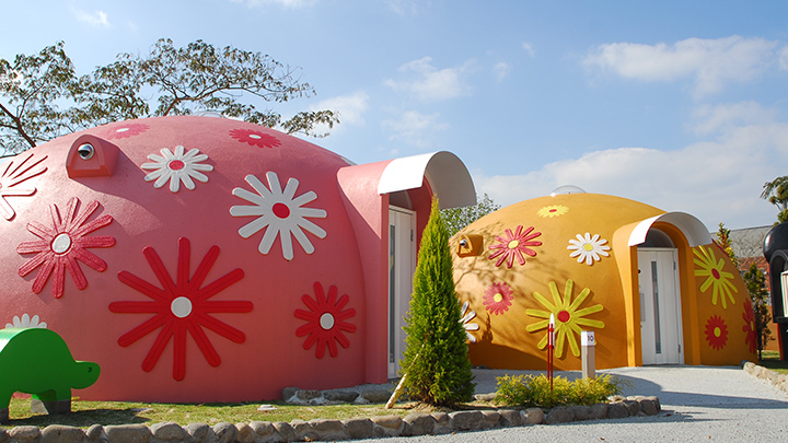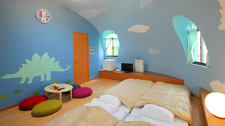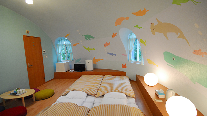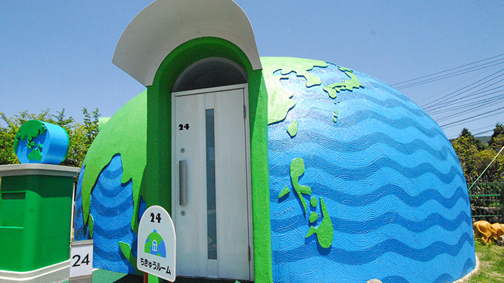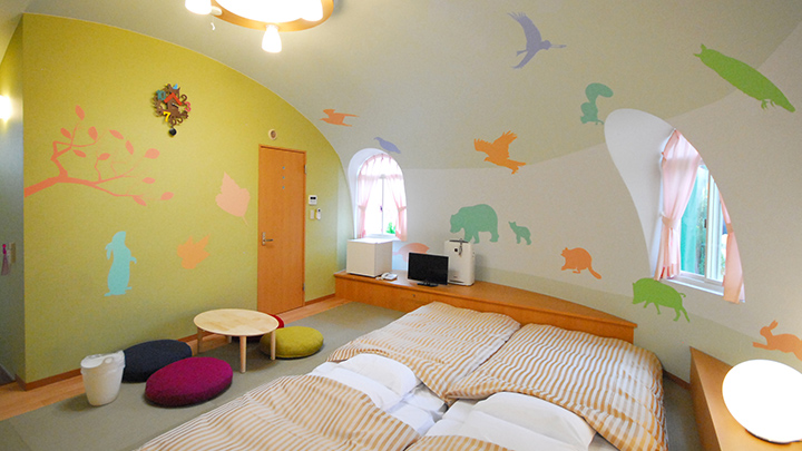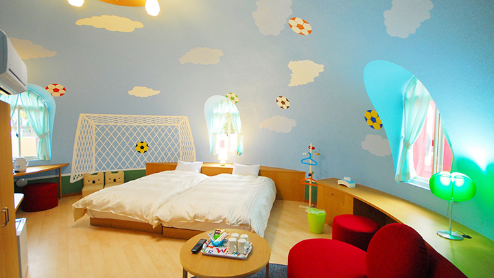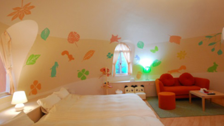A dragonfly, a soccer ball, and even a tree house! There are 26 dome-shaped guest rooms, each with a character design.