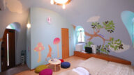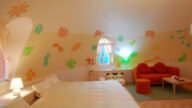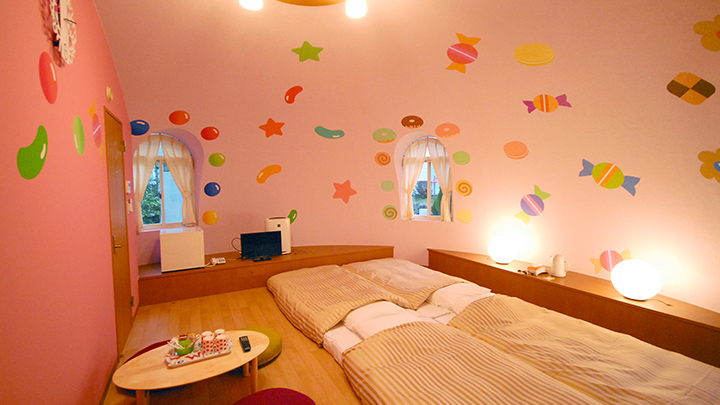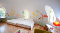 The cute exterior and rooms are inspired by a “mushroom forest.”