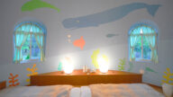 Lots of sea creatures both inside and outside! Can you dream of swimming with whales?