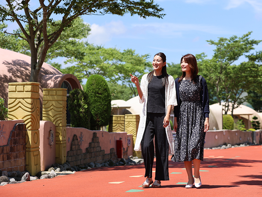 15 types of health hot baths with elaborate designsA hot spring facility that boasts a large scale of 1,000 square meters for both men and women. In the open outdoor area, you can experience nature with your entire body on the 150m long boardwalk, and enjoy 15 different hot bath styles.